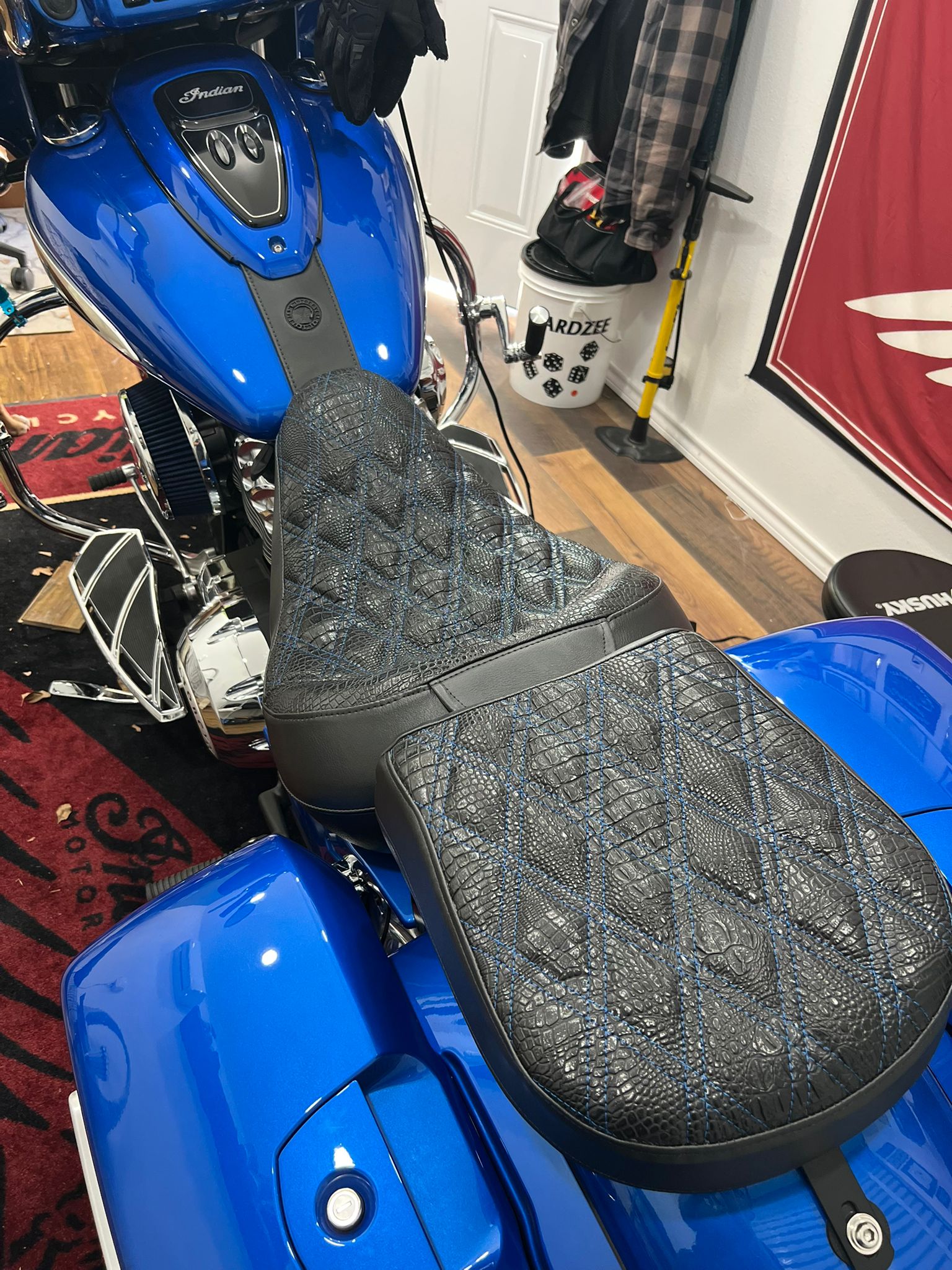 Dial in comfort and style with motorcycle seat upholstery tailored to how you ride. We reshape foam, add gel inserts, correct height, and recover with premium materials—from grippy performance vinyl to stitched leather with custom patterns. Whether you’re restoring a cruiser, sport bike, or adventure build, our Fort Worth shop delivers durable, weather-resistant finishes that hold up to Texas heat and miles. Get a free consultation to spec materials, stitching, and turnaround for your bike.