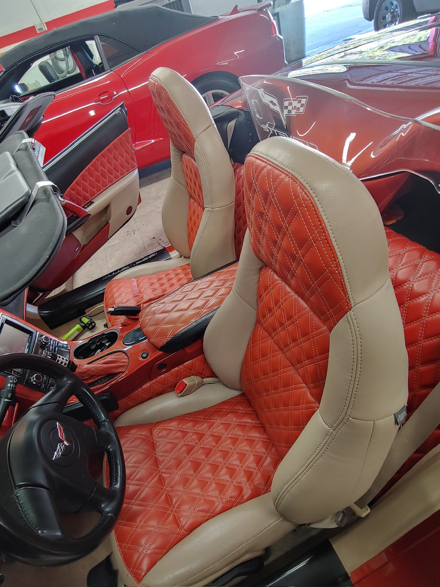 Timeline depends on project scope. Headliner replacement typically takes 1-2 business days. Single seat repair or reupholstery requires 2-4 business days. Full seat set (front and rear) usually takes 5-7 business days. Complete interior restoration with seats, carpet, door panels, and headliner generally requires 2-3 weeks. We provide specific timelines during your consultation based on our current schedule and your project requirements.