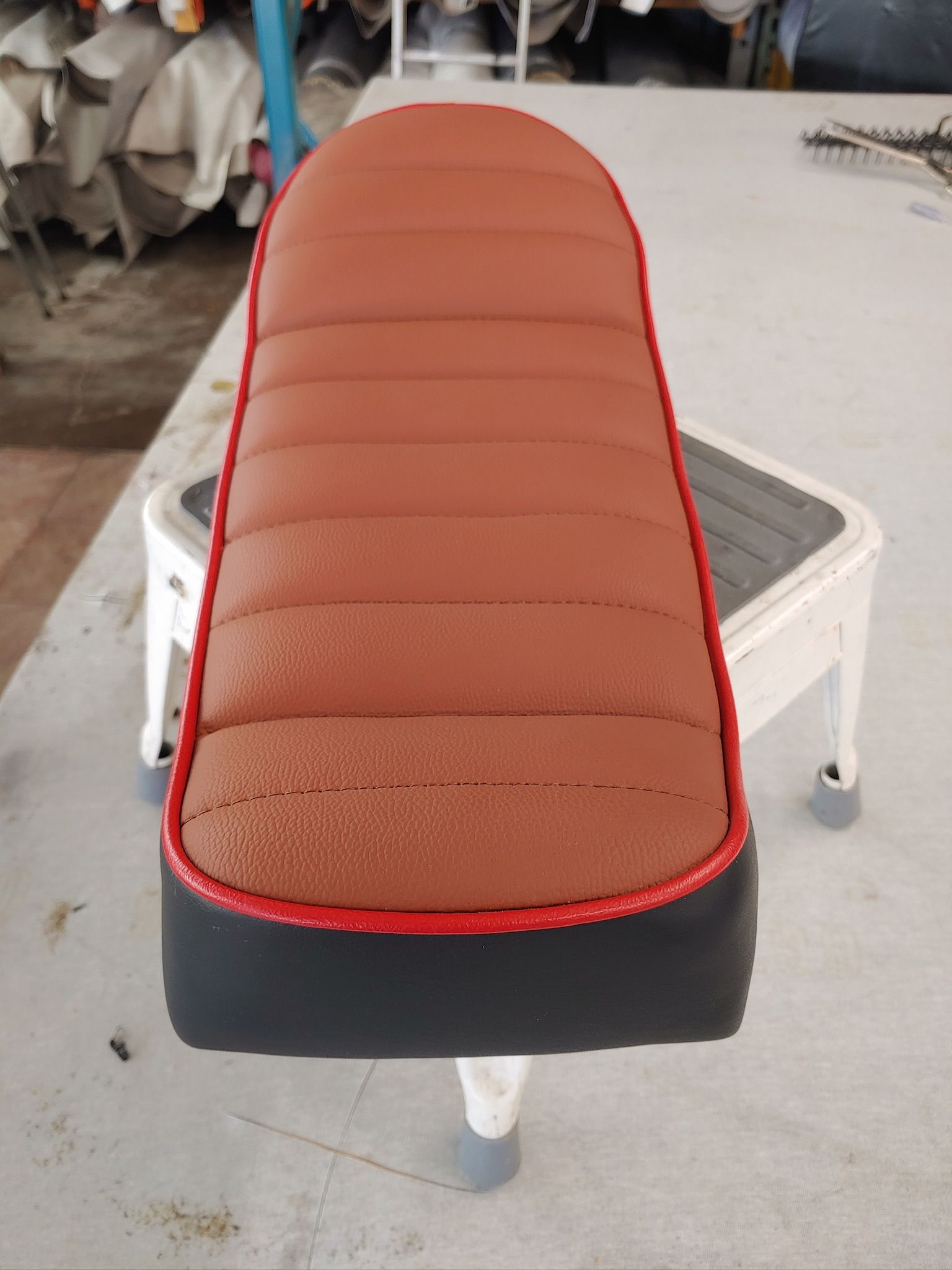 We can create custom seats using combinations of materials for both aesthetic appeal and functional benefits. Options include two-tone designs with contrasting colors, leather and vinyl combinations for premium appearance with practical durability, perforated sections for improved breathability, and textured surfaces for improved grip and control.